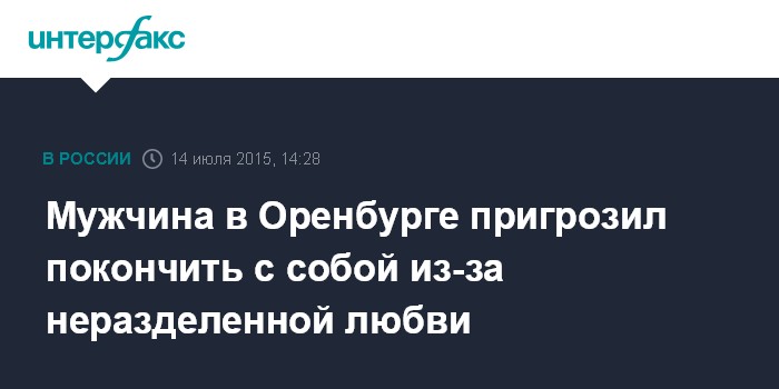 "Предварительно установлено, что это житель города Медногорска, в возрасте примерно 20 лет. Он забрался на здание суда сегодня ночью и сейчас угрожает покончить с собой из-за неразделенной любви", - сообщил собеседник агентства.