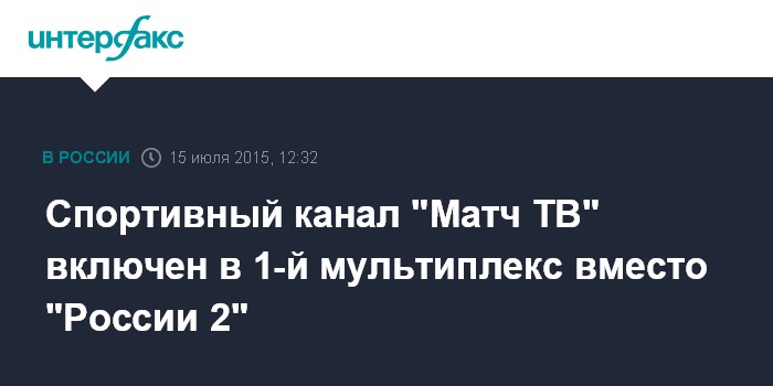 Спортивный канал "Матч ТВ" включен в 1-й мультиплекс вместо "России 2"