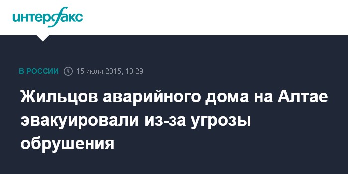 Москва. 15 июля. INTERFAX.RU - Находящийся в аварийном состоянии многоквартирный жилой дом в наукограде Бийске (Алтайский край) начал разрушаться, жильцы эвакуированы, сообщает в среду пресс-центр мэрии города.