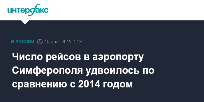 Москва. 15 июля. INTERFAX.RU - Аэропорт "Симферополь" обслужил в текущем году почти вдвое больше рейсов, чем за аналогичный период прошлого года, число направлений авиарейсов увеличилось с 45 до 50, сообщила в среду пресс-служба аэропорта.