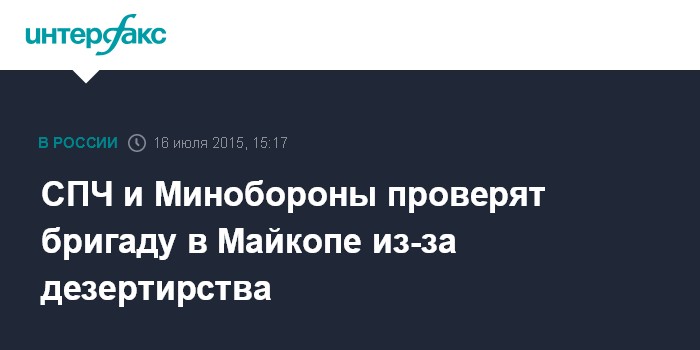Москва. 16 июля. INTERFAX.RU - Президентский Совет по правам человека (СПЧ) и министерство обороны проведут совместную проверку ситуации в 33-й Майкопской бригаде, некоторых военнослужащих которой привлекли к ответственности за дезертирство.