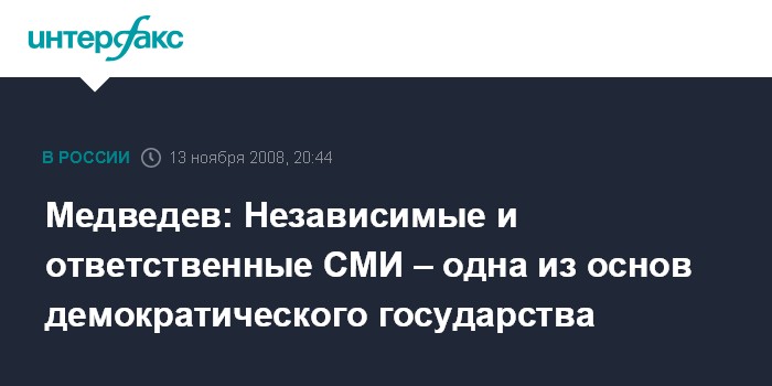 Медведев: Независимые и ответственные СМИ – одна из основ демократического государства