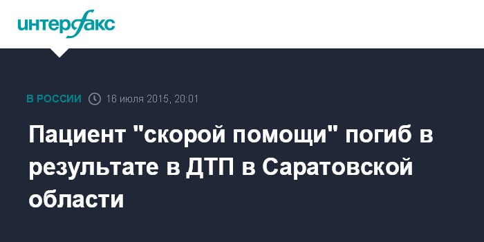 Москва. 16 июля. INTERFAX.RU - ДТП с участие двух автомашин "скорой помощи" и легкового автомобиля произошло в четверг в городе Балаково Саратовской области, в его результате погиб человек, сообщили "Интерфаксу" в УГИБДД по региону.