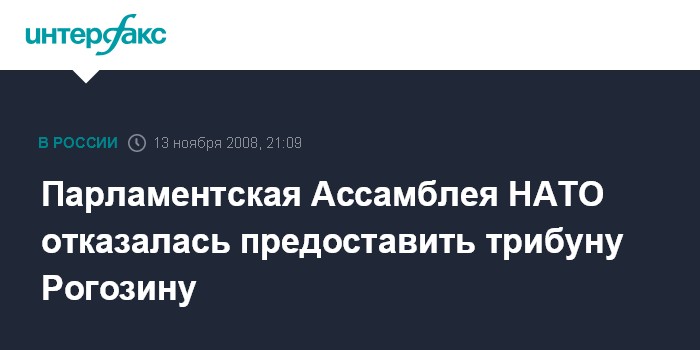 Москва. 13 ноября. INTERFAX.RU - Руководство Парламентской Ассамблеи (ПА) НАТО отказало постпреду России при Североатлантическом альянсе Дмитрию Рогозину в просьбе выступить на заседании Ассамблеи; российский политик в ответ проигнорировал приглашение принять участие в этом заседании.