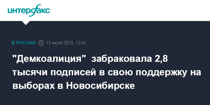 Москва. 17 июля. INTERFAX.RU – "Демкоалиция" готова к сплошной проверке подписей, собранных в поддержку оппозиционной партии ПАРНАС на выборах в Заксобрание Новосибирской области, намеченных на 13 сентября, заявил оппозиционер Алексей Навальный.