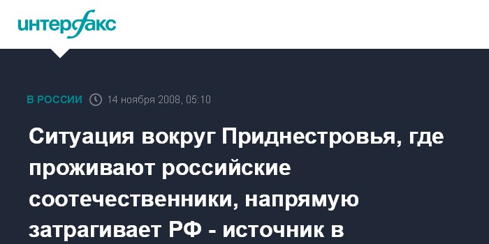 Ситуация вокруг Приднестровья, где проживают российские соотечественники, напрямую затрагивает РФ - источник в правительстве