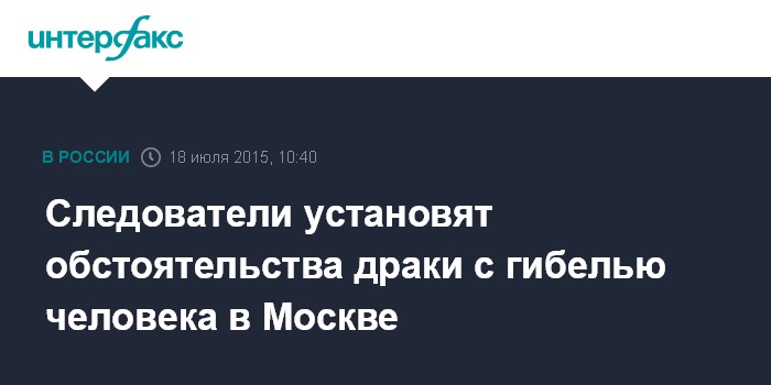 Ранее в пресс-службе московской полиции сообщили "Интерфаксу", что драка нескольких человек в центре российской столицы закончилась гибелью одного из них.