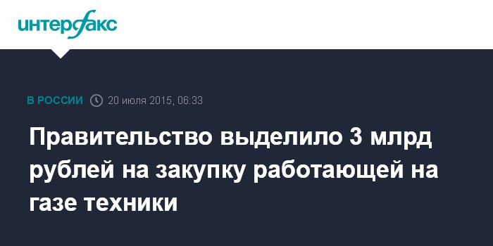 Правительство выделило 3 млрд рублей на закупку работающей на газе техники