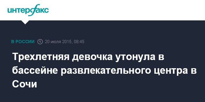 Москва. 20 июля. INTERFAX.RU - В Адлерском районе Сочи в бассейне развлекательного центра утонула трехлетняя девочка, сообщили агентству "Интерфакс" в пресс-службе ГУ МЧС России по Краснодарскому краю в понедельник.