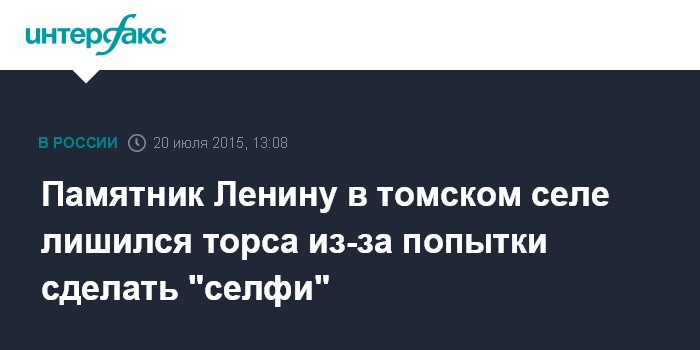Москва. 20 июля. INTERFAX.RU - Полицейские установили личность мужчины, который повредил и без того обезглавленный памятник Владимиру Ленину в селе Моряковский затон Томской области, сообщает в понедельник пресс-служба УМВД по региону.