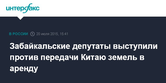 Москва. 20 июля. INTERFAX.RU - Лидеры фракций "Единая Россия" и КПРФ в Законодательном собрании Забайкальского края высказались против совместного проекта с Китаем в сфере АПК, который предусматривает передачу 150 тысяч га земли в долгосрочную аренду.