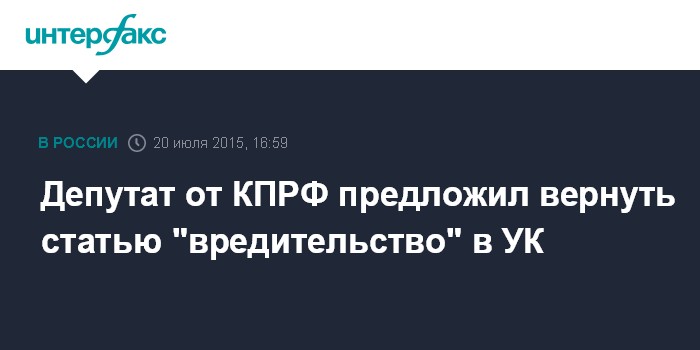 Депутат от КПРФ предложил вернуть статью "вредительство" в УК