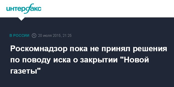 Москва. 20 июля. INTERFAX.RU - Роскомнадзор на данный момент не принял решения об обращении в суд с исковым заявлением о прекращении действия свидетельства о регистрации "Новой газеты", сообщил пресс-секретарь ведомства Вадим Ампелонский.