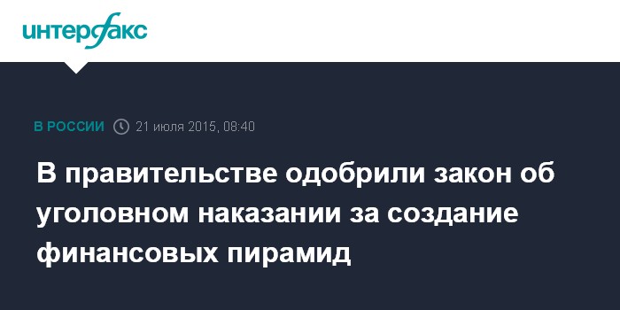 В правительстве одобрили закон об уголовном наказании за создание финансовых пирамид