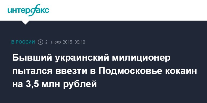 Москва. 21 июля. INTERFAX.RU - Бывший сотрудник МВД Украины попытался провезти на территорию России полкилограмма кокаина стоимостью 3,5 млн рублей, сообщает пресс-служба подмосковного управления ФСКН.