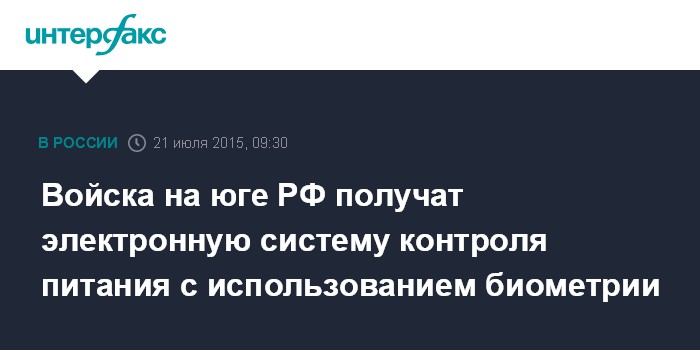 Войска на юге РФ получат электронную систему контроля питания с использованием биометрии