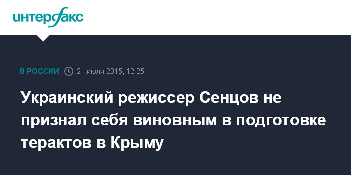 Украинский режиссер Сенцов не признал себя виновным в подготовке терактов в Крыму