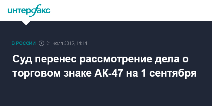 Суд перенес рассмотрение дела о торговом знаке АК-47 на 1 сентября