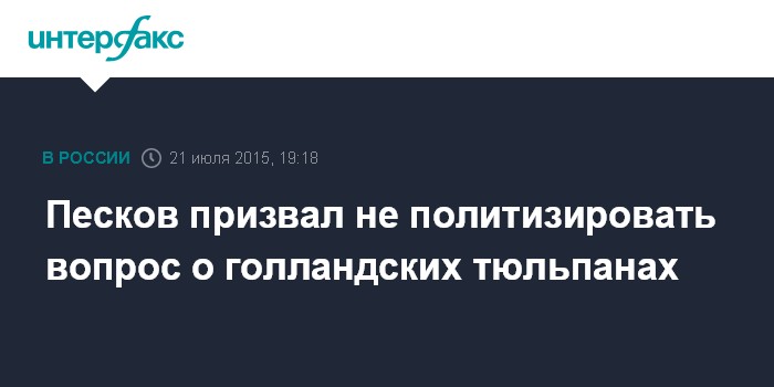 Москва. 21 июля. INTERFAX.RU - В Кремле адресовали в министерство сельского хозяйства РФ или в Россельхознадзор вопрос о возможном запрете на импорт голландских тюльпанов и призвали не политизировать этот вопрос.