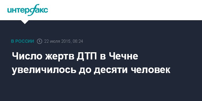 Москва. 22 июля. INTERFAX.RU - Число жертв ДТП в Веденском районе Чечни с участием пассажирской "Газели" увеличилось до десяти человек, сообщили в среду агентству "Интерфакс" в экстренных службах региона.