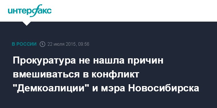В ответе указано, сообщил собеседник агентства, что ранее Центральный районный суд Новосибирска признал законным отказ областного СУ СКР от принятия процессуального решения по заявлению "Демкоалиции" о клевете со стороны мэра Новосибирска.