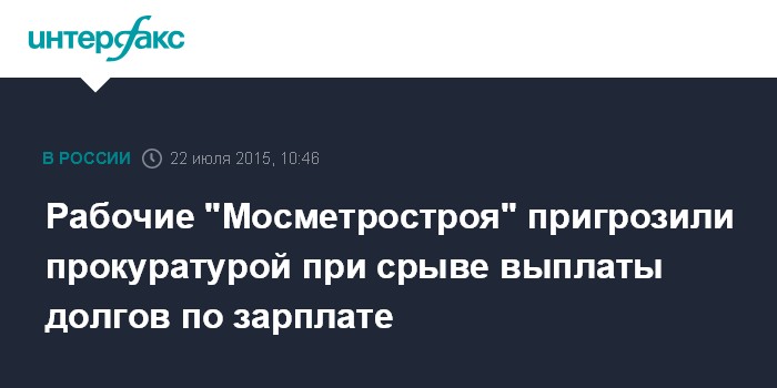 Москва. 22 июля. INTERFAX.RU - Рабочие "Мосметростроя" намерены обратиться в прокуратуру, если до конца этой недели со стороны компании не будут полностью погашены все долги по зарплате, сообщил "Интерфаксу" в среду источник, знакомый с ситуацией.