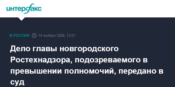 Москва. 14 ноября. INTERFAX.RU - В Hовгородский городской в суд передано уголовное дело в отношении начальника местного Ростехнадзора, который обвиняется в незаконной выдаче предпринимателям лицензий.