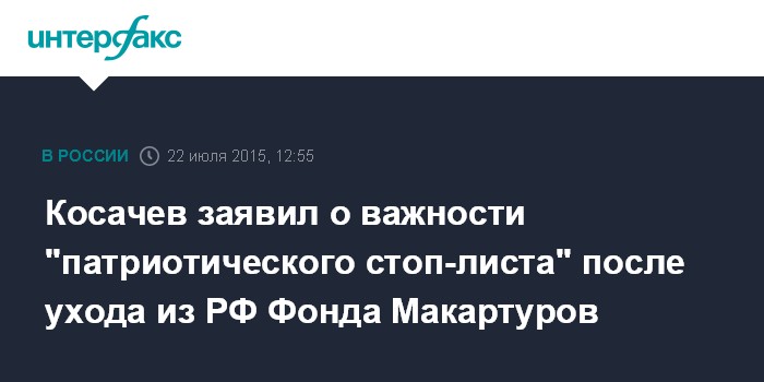 "Повторюсь: остается констатировать, что мы таким образом находимся на правильном пути, и целью нашего патриотического стоп-листа никогда не было введение каких-либо формальных препятствий для деятельности организаций, попавших в него. Это решение (о закрытии или приостановке деятельности - ИФ) находится исключительно в компетенции исполнительной власти, и каждая такая организация должна сама определять алгоритм своих действий", - подчеркнул Косачев.
