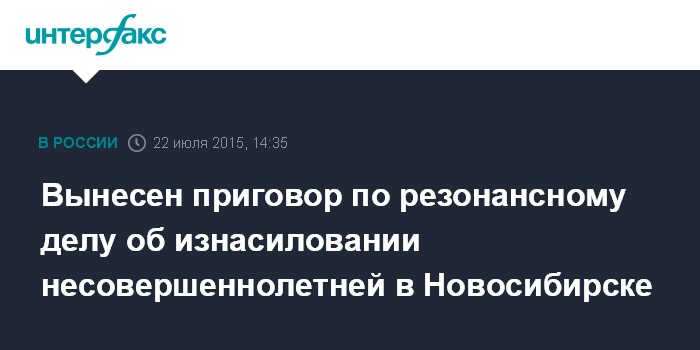 Москва. 22 июля. INTERFAX.RU - Ленинский районный суд Новосибирска вынес обвинительный приговор четырем местным жителям, в том числе трем несовершеннолетним, обвиненным в изнасиловании 16-летней уроженки Кемерово, сообщает СУ СКР по региону.