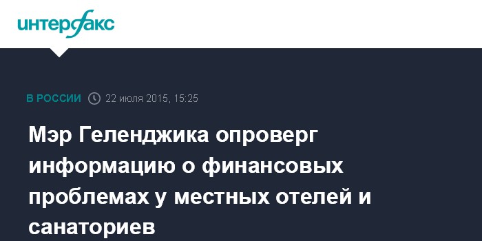 Москва. 22 июля. INTERFAX.RU - Санатории и пансионаты Геленджика не обращались в администрацию города по поводу финансовых проблем после отзыва лицензии "Геленджик-Банка", они работают в штатном режиме, заявил агентству "Интерфакс" в среду мэр города Виктор Хрестин.