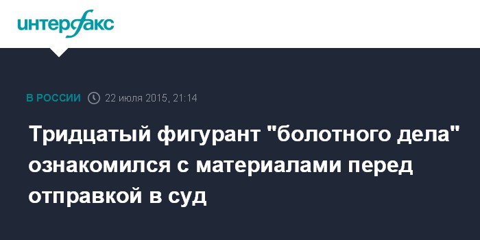 Москва. 22 июля. INTERFAX.RU - Тридцатый фигурант "болотного дела" Иван Непомнящих и его защита завершили ознакомление с его материалами, меньше чем через месяц они поступят в суд, сообщил его адвокат.