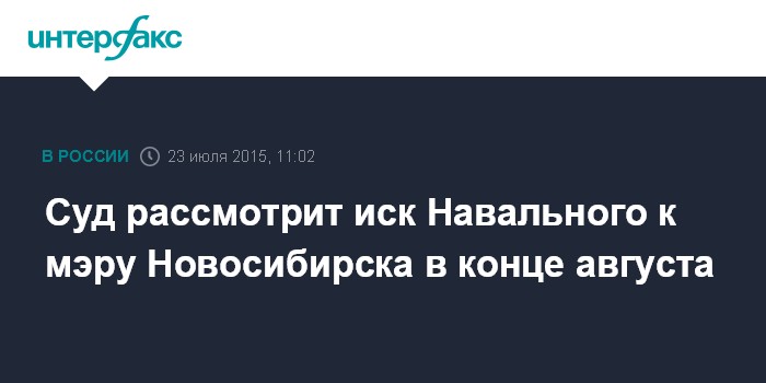 Москва. 23 июля. INTERFAX.RU - Центральный районный суд Новосибирска 27 августа приступит к рассмотрению иска оппозиционера Алексея Навального и регионального отделения ПАРНАС к мэру Новосибирска Анатолию Локтю о защите чести и достоинства, сообщил агентству "Интерфакс" представитель партии Вячеслав Гимади в четверг.
