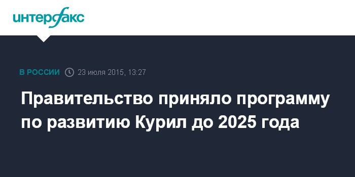Москва. 23 июля. INTERFAX.RU - Федеральная целевая программа по развитию Курильских островов до 2025 года, рассматривавшаяся правительством в четверг, в целом принята, сообщил журналистам министр РФ Михаил Абызов по окончании заседания.