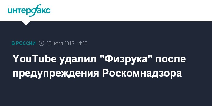 YouTube удалил "Физрука" после предупреждения Роскомнадзора