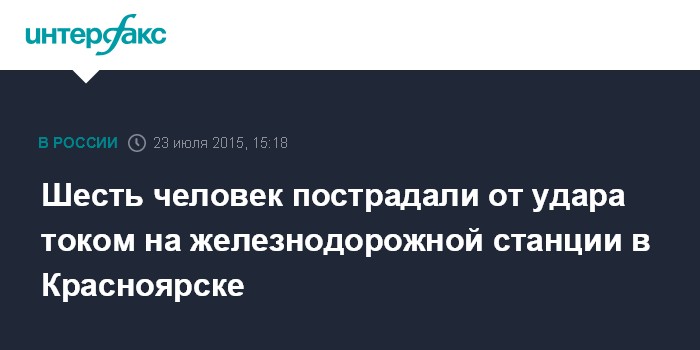Москва. 23 июля. INTERFAX.RU - Начальник железнодорожной станции Злобино в Красноярске и пять работников подрядной организации пострадали от удара током от поврежденного кабеля, сообщила пресс-служба Западно-Сибирской транспортной прокуратуры в четверг.