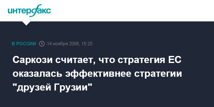 "Наша стратегия, стратегия Евросоюза (по урегулированию ситуации на Кавказе) оказалась более эффективной, чем стратегия так называемых "друзей Грузии", - сказал Саркози на пресс-конференции по итогам саммита Россия - ЕС.
