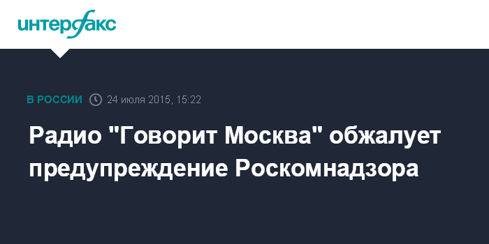 Радио "Говорит Москва" обжалует предупреждение Роскомнадзора