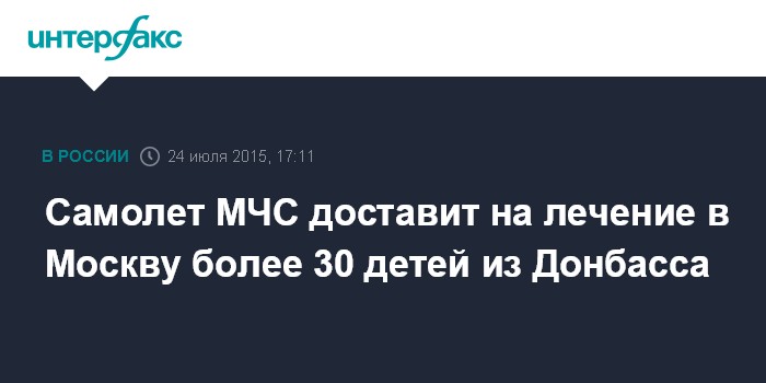 Самолет МЧС доставит на лечение в Москву более 30 детей из Донбасса