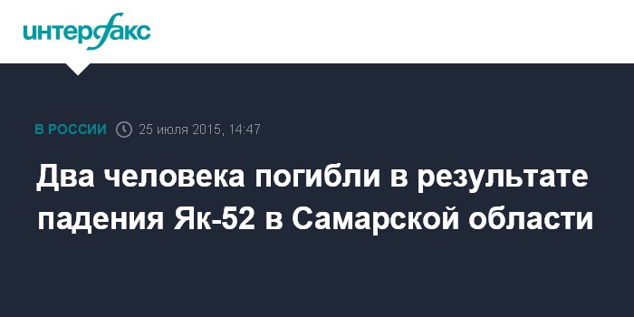 Москва. 25 июля. INTERFAX.RU - Два человека стали жертвами падения самолета ЯК-52 на огород частного дома в Самарской области, сообщил "Интерфаксу" источник в медицинских кругах региона.