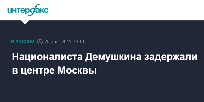 Москва. 25 июля. INTERFAX.RU - Полиция в субботу задержала в центре Москвы лидера националистического объединения "Русские" Дмитрия Демушкина.