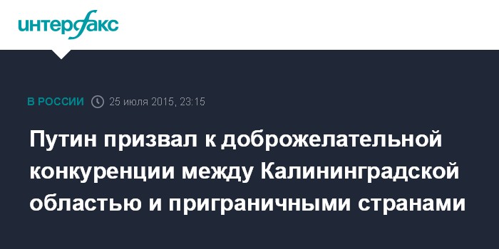 "В Литве есть свои преимущества, и в Латвии, Эстонии, Польше. Надо, чтобы такая была доброжелательная конкуренция, и я уверен, что у Калининграда, Калининградской области много конкурентных преимуществ. Ими нужно только эффективно воспользоваться", - ответил Путин.