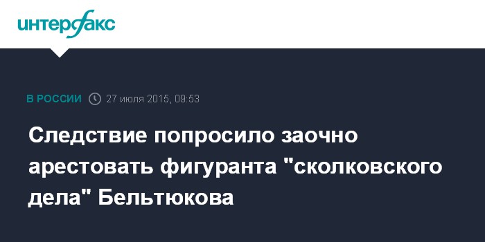 Следствие попросило заочно арестовать фигуранта "сколковского дела" Бельтюкова
