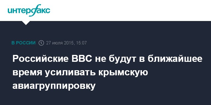 Москва. 27 июля. INTERFAX.RU - Необходимости усиливать в ближайшее время авиагруппировку в Крыму нет, заявил в понедельник журналистам главком ВВС РФ генерал-полковник Виктор Бондарев.