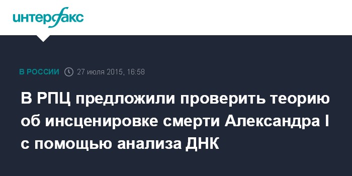 Москва. 27 июля. INTERFAX.RU - Секретарь Патриаршего совета по культуре архимандрит Тихон (Шевкунов) полагает, что точку в вопросе о том, был ли почитаемый в народе старец Феодор Томский в действительности императором Александром I, покинувшим престол, сможет поставить анализ ДНК.