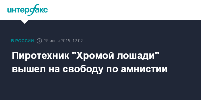 Пиротехник "Хромой лошади" вышел на свободу по амнистии