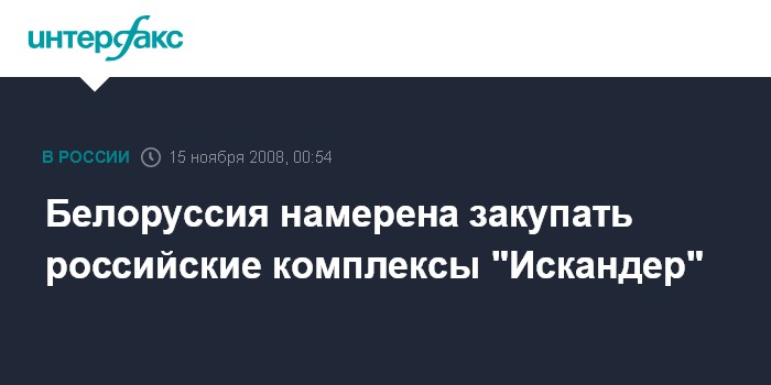 Отвечая на вопрос о наличии предложения со стороны России разместить "Искандер" в Белоруссии, а не в Калининграде, А.Лукашенко сказал: "Не спешите. Калининград, Беларусь, Россия, "Искандер" - все связывается".