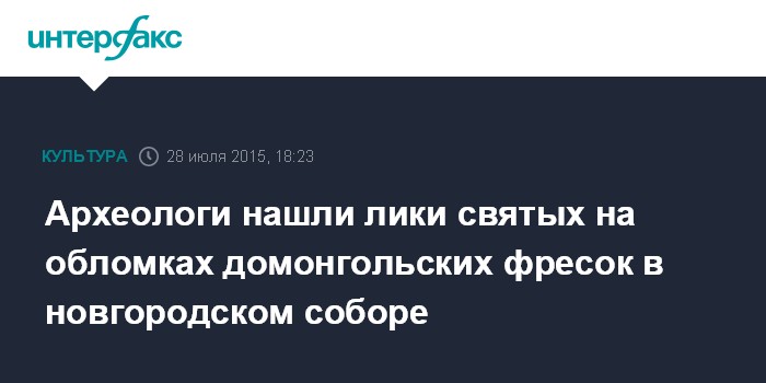 Москва. 28 июля. INTERFAX.RU - Лики древних святых обнаружили на обломках фресок археологи в Георгиевском соборе XII века под Великим Новгородом, сообщил во вторник журналистам руководитель исследовательских работ в этом храме, член-корреспондент РАН Владимир Седов.