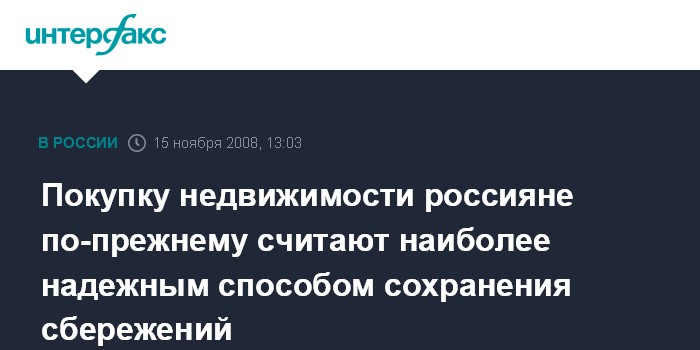 Москва. 15 ноября. INTERFAX.RU - Покупку недвижимости россияне по-прежнему считают самым надежным способом вложения денег, однако за месяц число приверженцев подобной стратегии сократилось с 51% до 48%, выяснили социологи.