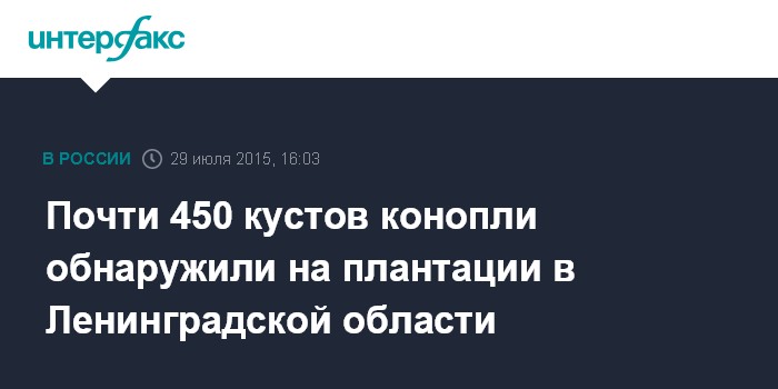 Москва. 29 июля. INTERFAX.RU - Полиция обнаружила в Ленинградской области крупную плантацию конопли.