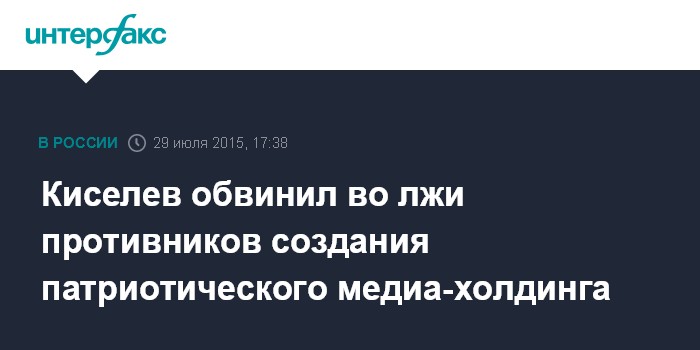 Киселев обвинил во лжи противников создания патриотического медиа-холдинга